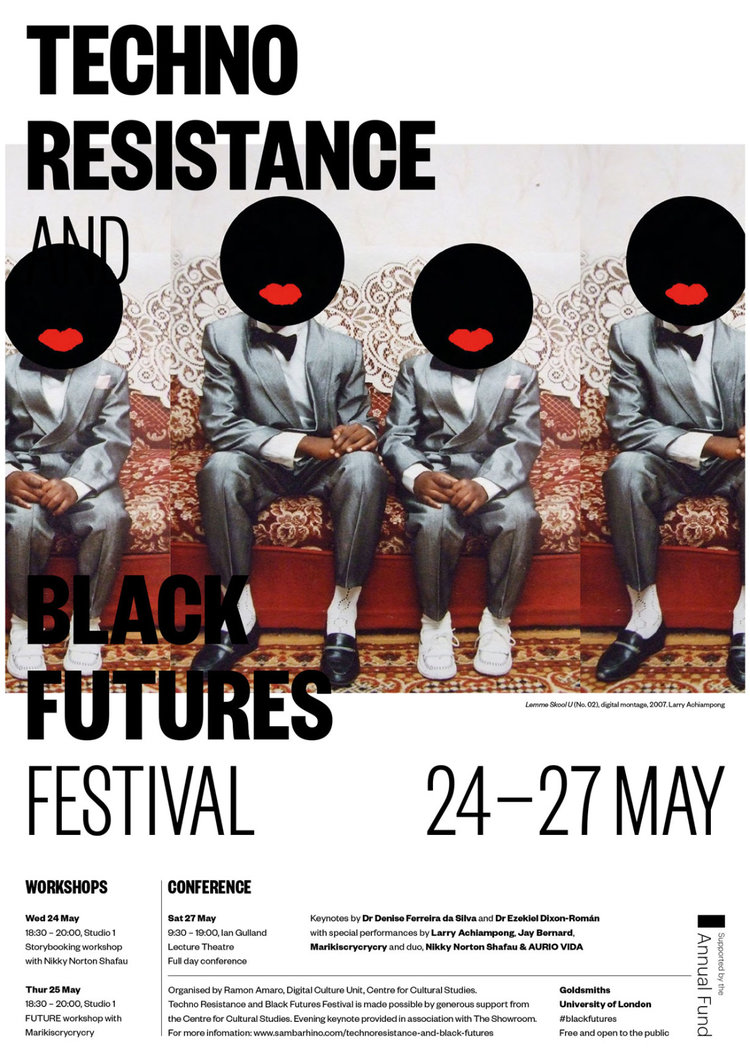 Techno Resistance and Black Futures takes this point of departure as method of intervention and critique (in literature, philosophy, sonic resonances, short film, science fiction, social platforms, gaming, cosplay, graphic arts and other digital and geek ecologies) that put forward the potential for alternative modes of living for the racialised body. In other words, it asks how the black, brown and 'othered' body can move beyond the study of symbolic, transcendental or physiological human attributes, or critique that exposes the violences of power (in their colonial, imperial and capitalist articulations) toward conditions of relation that activate new modes of being and becoming, and ultimately the liberation of black potential?