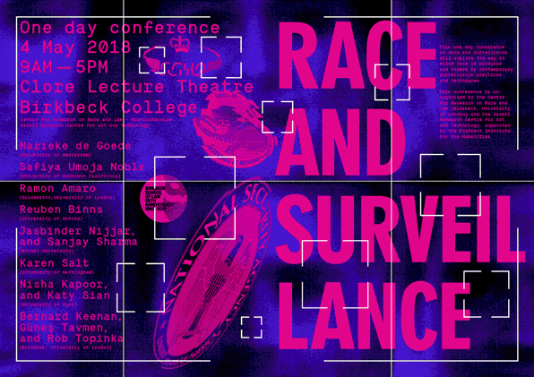 This one day conference on race and surveillance will explore the way in which race is produced and formed by contemporary surveillance practices and techniques. Racialised differences are reproduced and rearticulated in the use of new surveillance methods, most clearly in terms of pre-crime practices and mechanisms. There has been strong and public resistance to the phenomenon of normalised and blanket surveillance since Edward Snowden's revelations about the practices of the National Security Agency (NSA) in the US. However, scholarly scrutiny of the differential material and discursive effects of surveillance is urgently needed. Contemporary practices of surveillance are based on long histories of inventing 'other races' and the observation and control of minoritised 'communities' in the colonies and imperial centres. Understanding contemporary surveillance practices demands understanding their origins in and ongoing connection to colonial histories. Important scholarly interventions on the intersection between race and surveillance exist in the US (Safiya Umoja Noble 2018; Simone Browne 2015; Arun Kundnani and Deepa Kumar 2015). However, the conjunction between race and surveillance is under-researched in Britain and Europe, and this conference will take steps to remedying this.