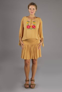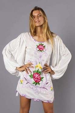 "Bermain" Smock mini dress/top - Folk style embroidery
