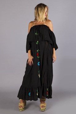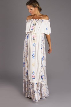 "Garden Party" off shoulder embroidered maxi dress