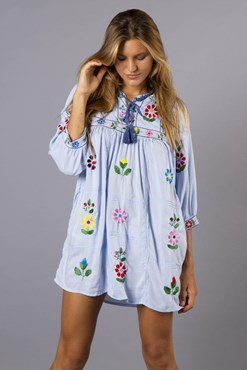 "Stevie" Women's embroidered duster - 'Baby Baby' blue