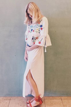 "Wonder Years" Women's embroidered maxi dress - Ivory