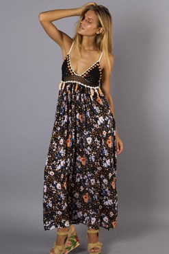 "Botanica" Women's crochet and embroidered maxi dress - Black
