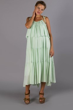 "Little Bear" Hand embroidered maxi dress in pastel Jade