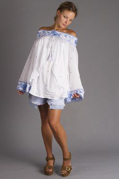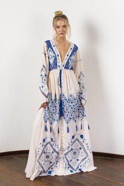 "CLEO" Women's embroidered duster - Ivory with Royal Blue