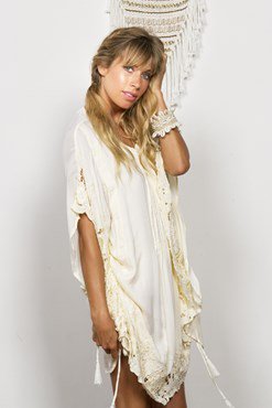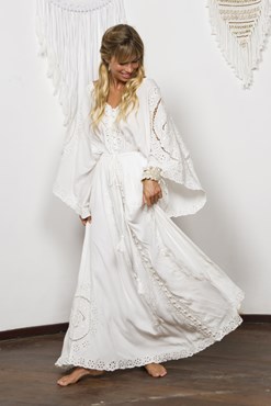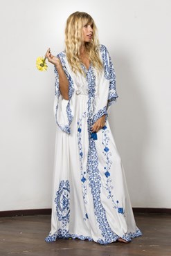 "La Bonita" Women's embroidered bohemian kaftan dress - white