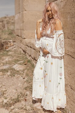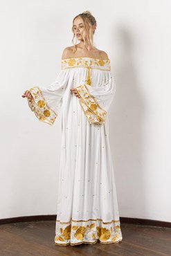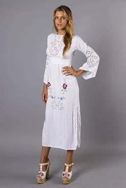 "Wonder Years" Women's embroidered maxi dress - Ivory