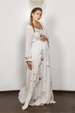 "Repeat After Me" embroidered maternity and nursing kaftan - Ivory
