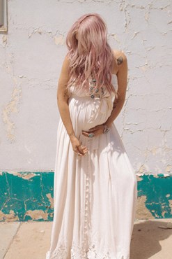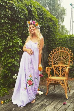 "Bojangles" Ours Is Love maternity maxi dress with embroidery - Deep cut back in Pink Vanilla