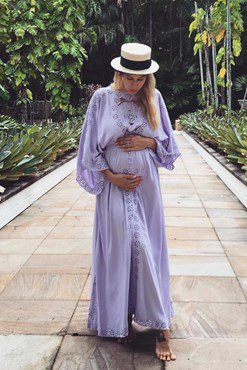 "Zippora" Cut-Work Embroidery Maternity Maxi Dress - Lilac