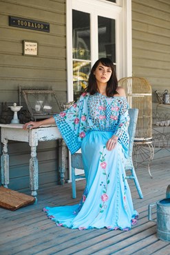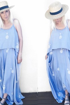 "Carousel" Women's printed and embroidered maxi dress - Sky Blue