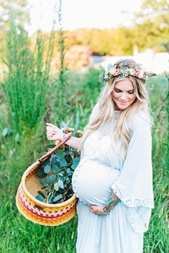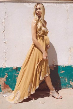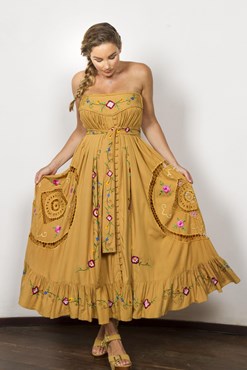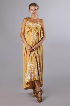 "Abbey Road" maternity maxi skirt / strapless dress - Gold with floral embroidery