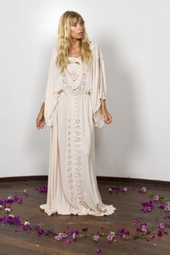 "Two Sundays" Women's embroidered gown - vanilla cream