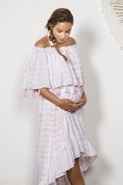 "Zippora" Cut-Work Embroidery Maternity Maxi Dress - Baby Pink