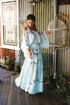 "Wonder Years" Women's embroidered maxi dress - 'Baby Baby' blue