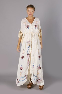 "CLEO" Women's embroidered duster - Ivory with Ivory