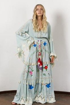 "Pandora" Women's patchwork embroidery kimono maxi dress