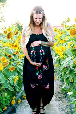 "Bojangles" Ours Is Love maternity maxi dress with embroidery - Deep cut back in Black