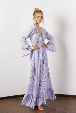 "Georgies Girl - Trapeze" Women's embroidered maxi dress - Lavender